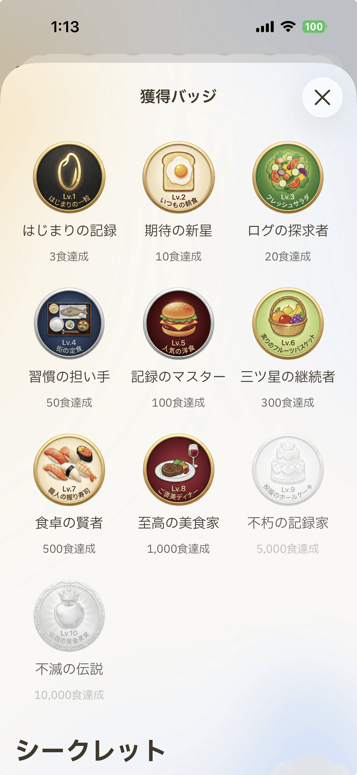 記録を続けるとバッジが貯まります。コレクションを増やす感覚で、楽しく続けられます。