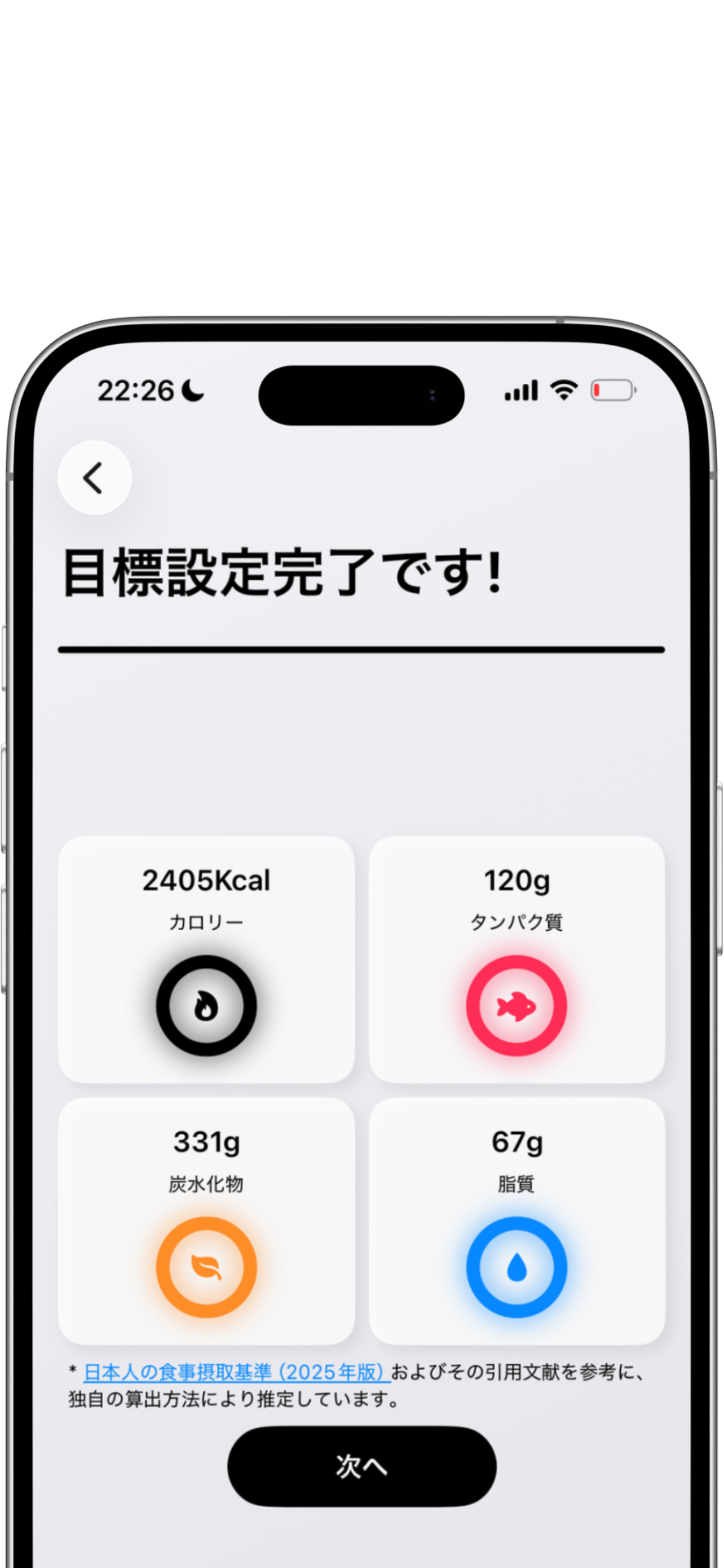 「記録が面倒」で、食事管理を諦めていませんか?カロサポなら、起動から完了まで最短2タップ。余計なボタンも、複雑な操作も一切ない食事管理アプリです。ただ生活しているだけで、理想の食生活が身につく体験を。